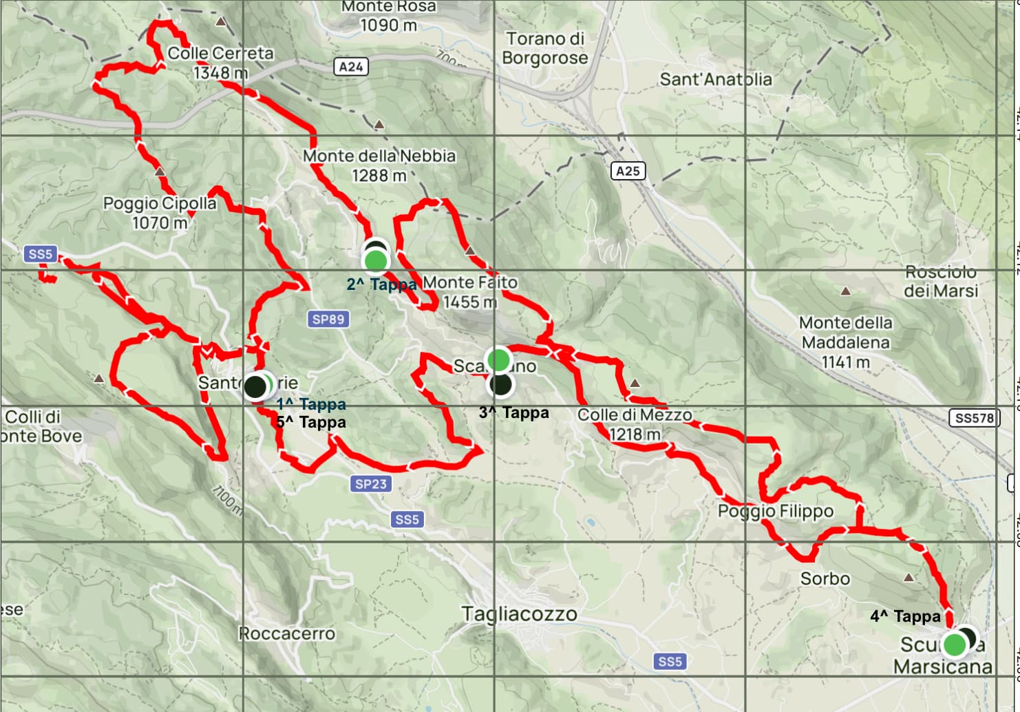 Questa tappa parte dal centro di Scurcola Marsicana, Chiesa della Santissima Trinità, attraversa una parte di Corso Emanuele III, per prendere la prima scalinata a sinistra e salire tra le storiche stradine del centro storico fino a raggiungere il Castello Orsini o Rocca Orsini dal quale non seguiremo il sentiero che porta a Monte San Nicola, ma prenderemo la comoda e panoramica carrareccia sulla destra fino a raggiungere il suo culmine all’interno di una fantastica pineta giunti a questo punto prendiamo alla nostra sinistra e seguiremo una strada forestale all’interno della pineta di rimboschimento e la attraverseremo tutta per uscire su un sentiero su prati fino a incrociare il terzo sentiero (540D) sulla nostra destra che imbocchiamo fino ad arrivare a lambire il borgo di Poggio Filippo che lasceremo al cimitero per imboccare alla nostra sinistra, dove incrociamo il sentiero del Cammino dei Briganti (CdB) fino a Scanzano.